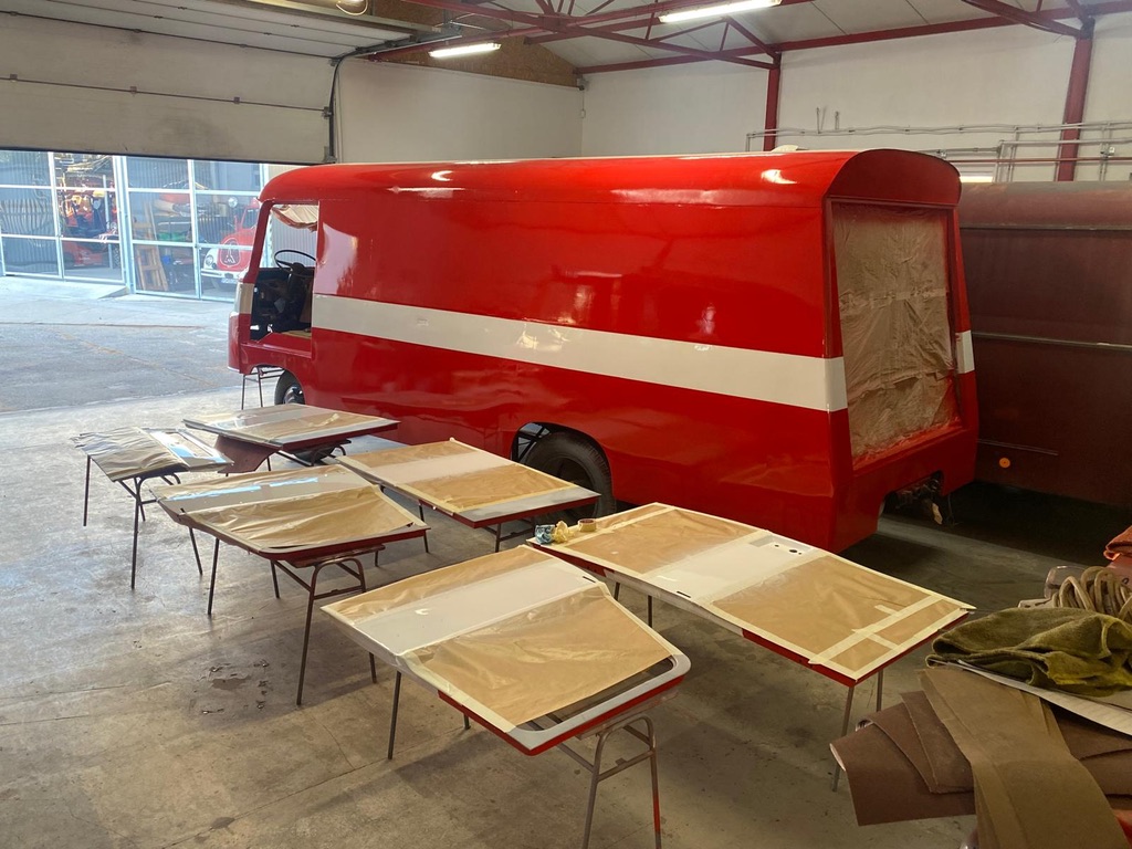 Renovácia prebiehala priamo v našom DHZ BOZPO servise a zahŕňala kompletnú obnovu interiéru aj exteriéru. Opravené boli karosárske časti, obnovený bol interiér, vozidlo dostalo nový náter a funkčné prvky boli opravené alebo nahradené. Celý proces bol výsledkom poctivej tímovej práce.